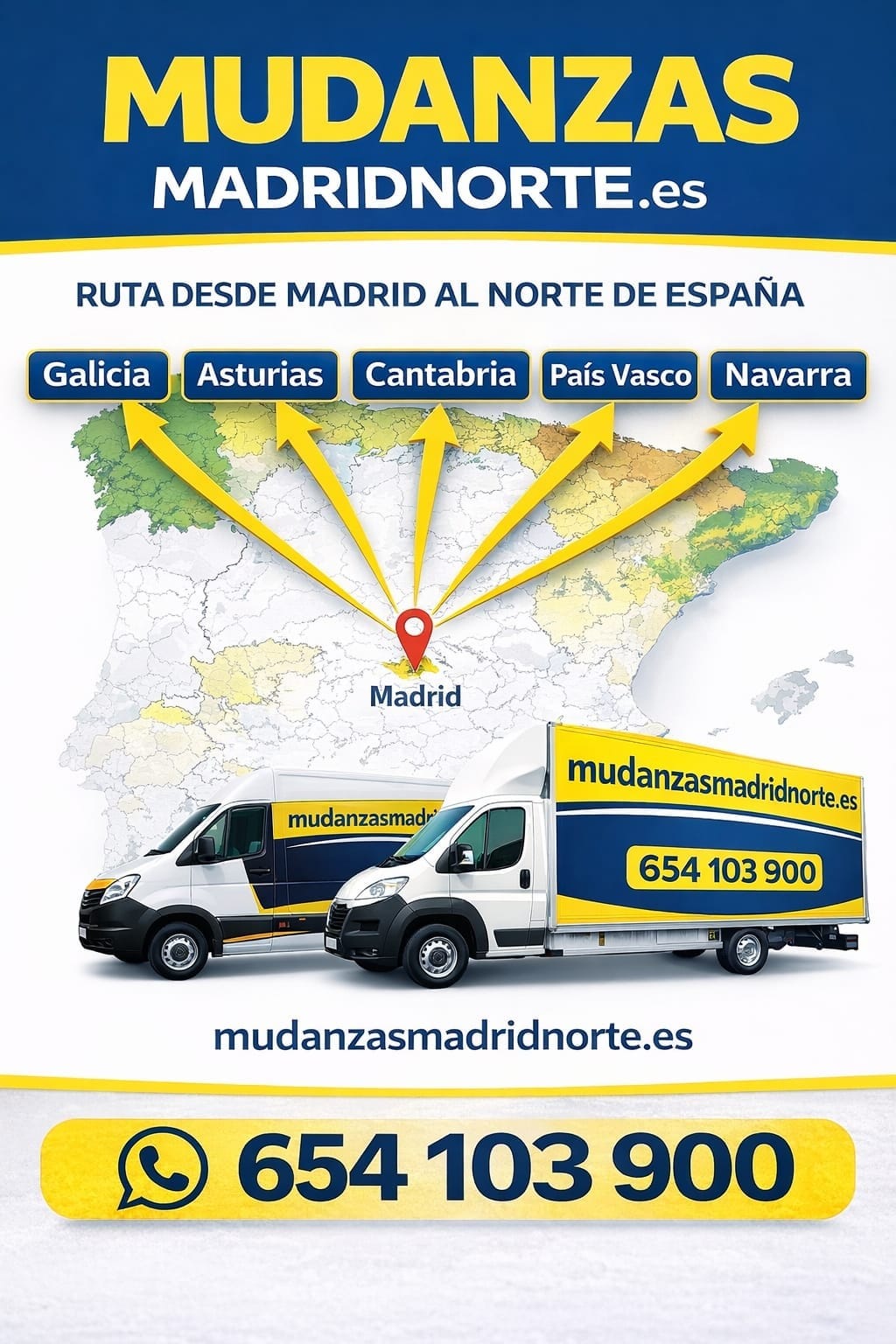 Mudanzas Madrid Norte es un servicio especializado en mudanzas y transporte directo entre Madrid y las principales comunidades del norte de España: Galicia, Asturias, Cantabria, País Vasco y Navarra.